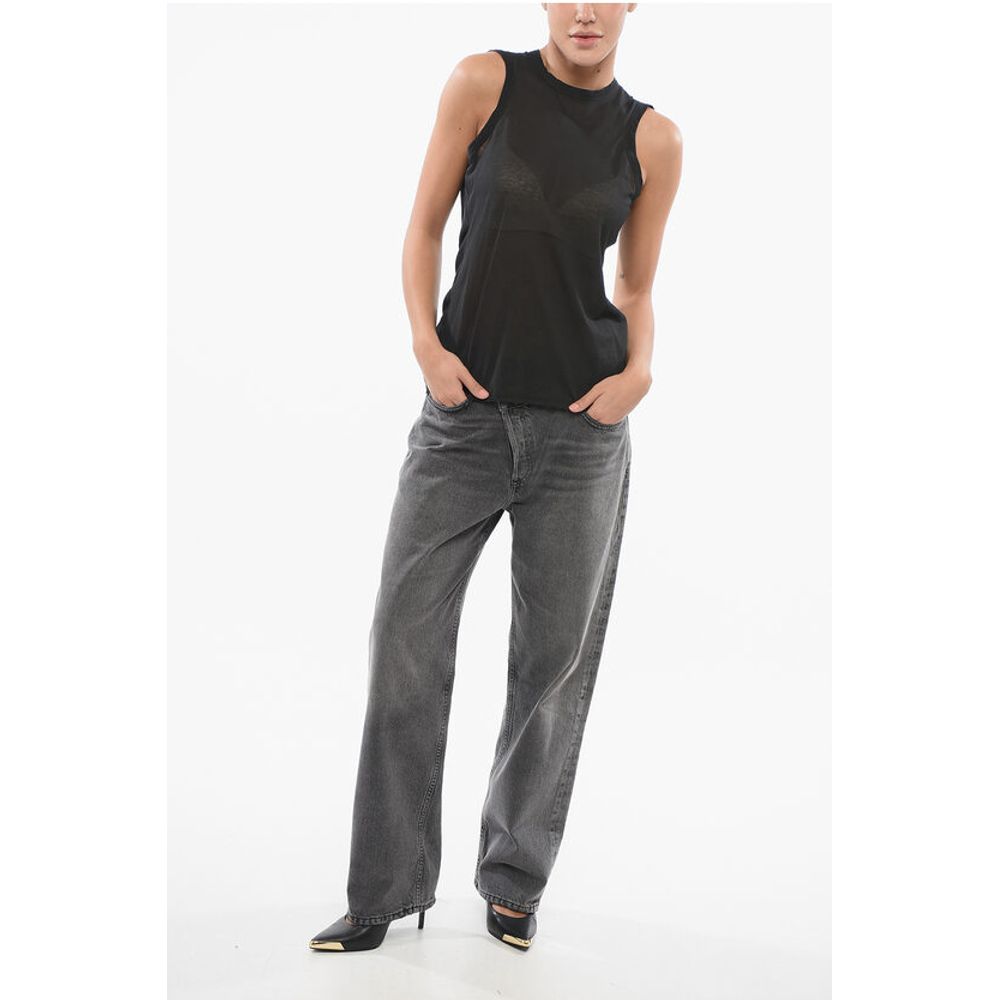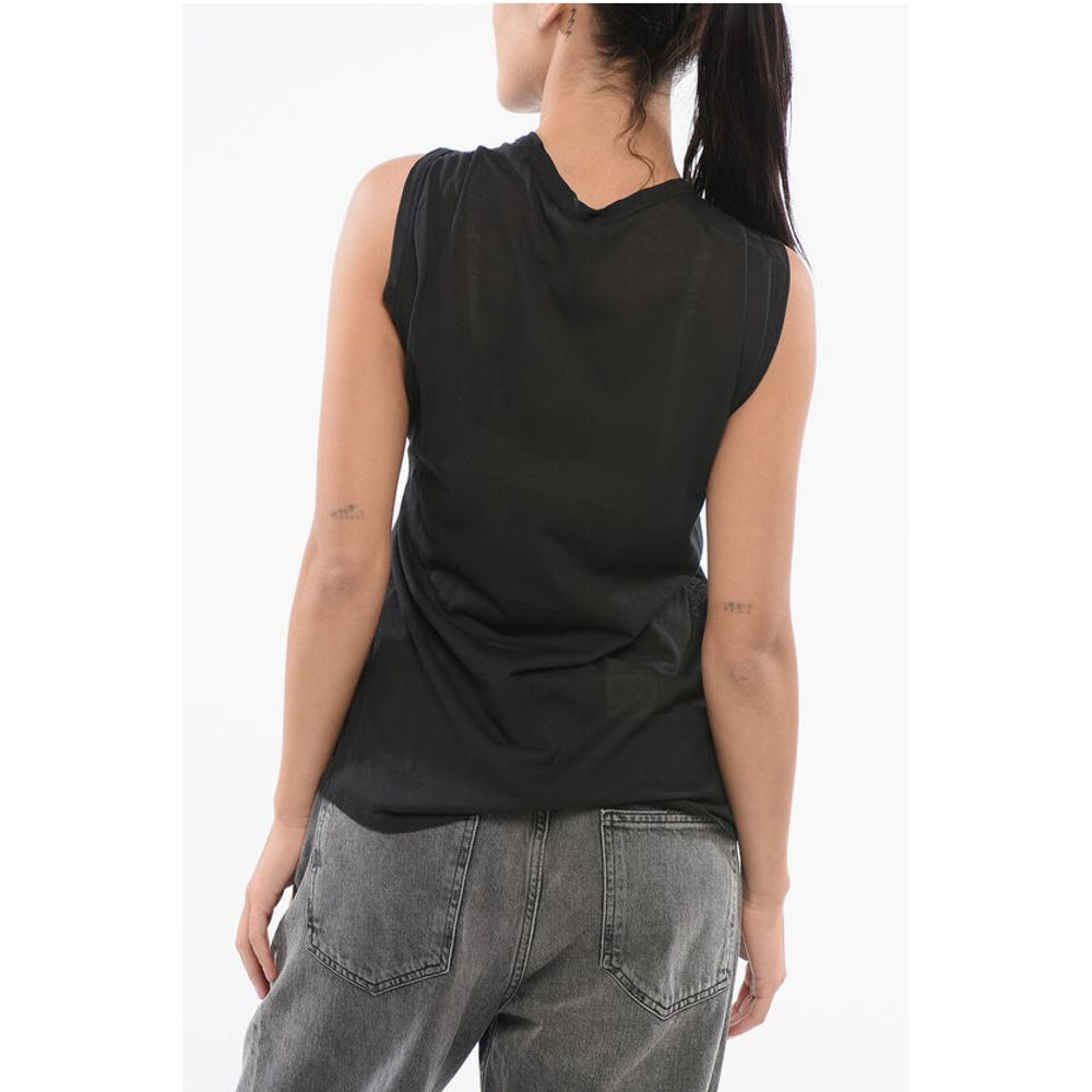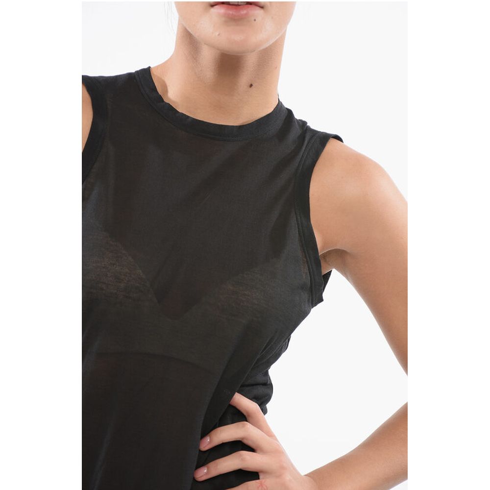 Roberto Collina Semi-Sheer Cotton Blend Crew Neck Top