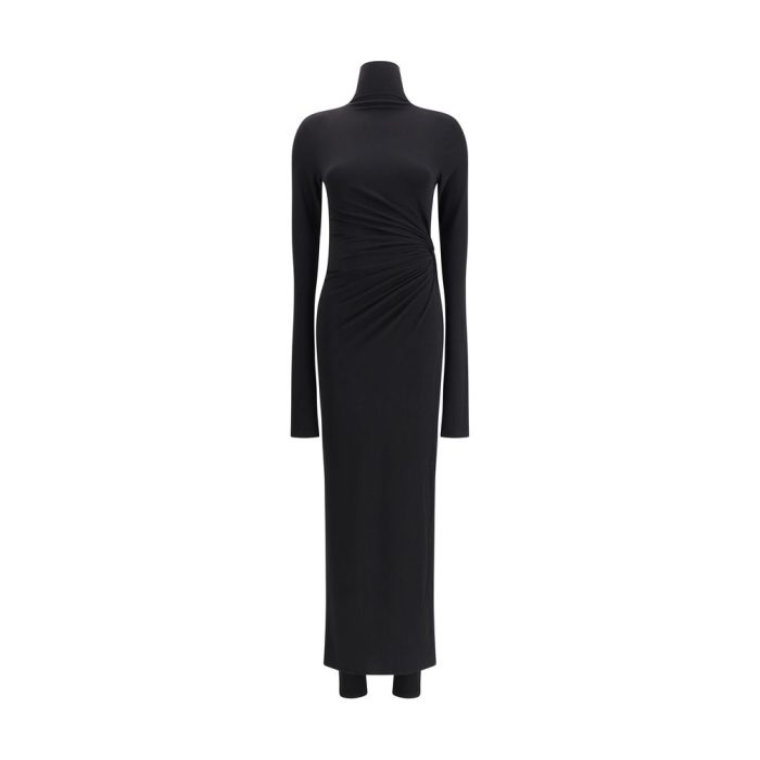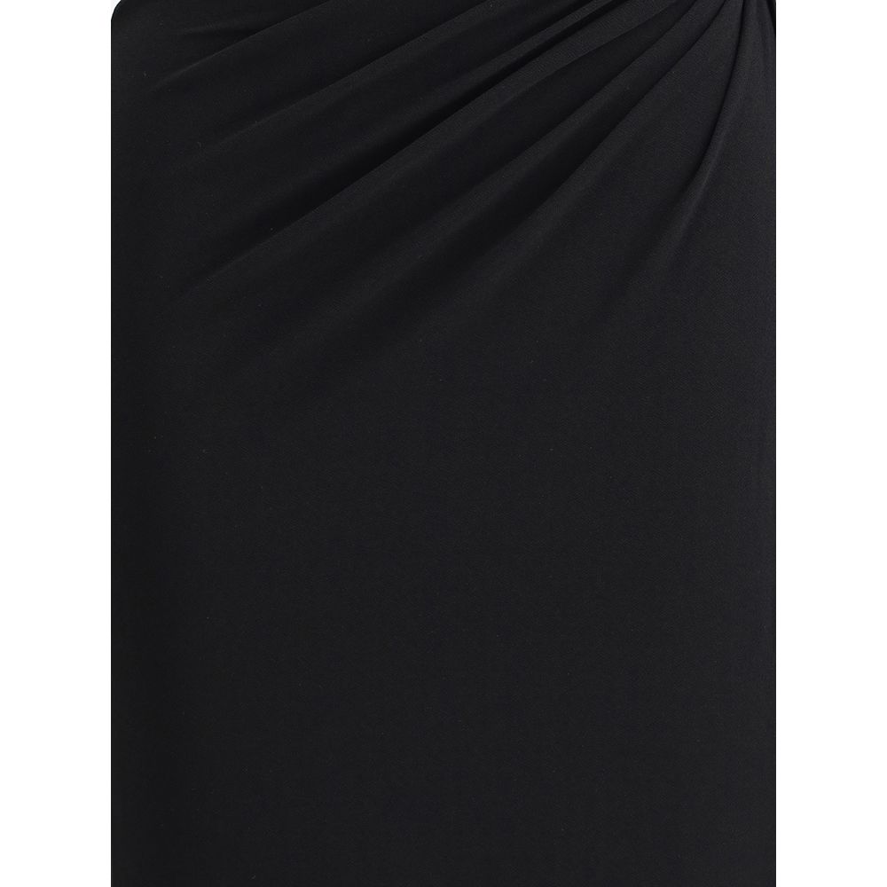 The Tessa Jumpsuit by The Andamane is a sleek, modern piece in dark brown sablé jersey with a fitted fit. Featuring a high buttoned neckline and a draped knot detail uncovering the back, it combines femininity and sophistication. The bottom combines slim pants with a maxi skirt with a deep slit for a unique movement effect. Perfect for special occasions to stand out in style.