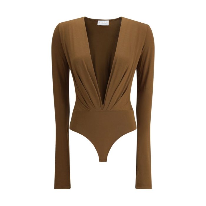 The Zelda bodysuit by The Andamane is an elegant and feminine piece featuring a draped V-neckline that enhances the silhouette. Long sleeves add a sophisticated touch, while the classic button-down bottom closure ensures convenience and comfort.
