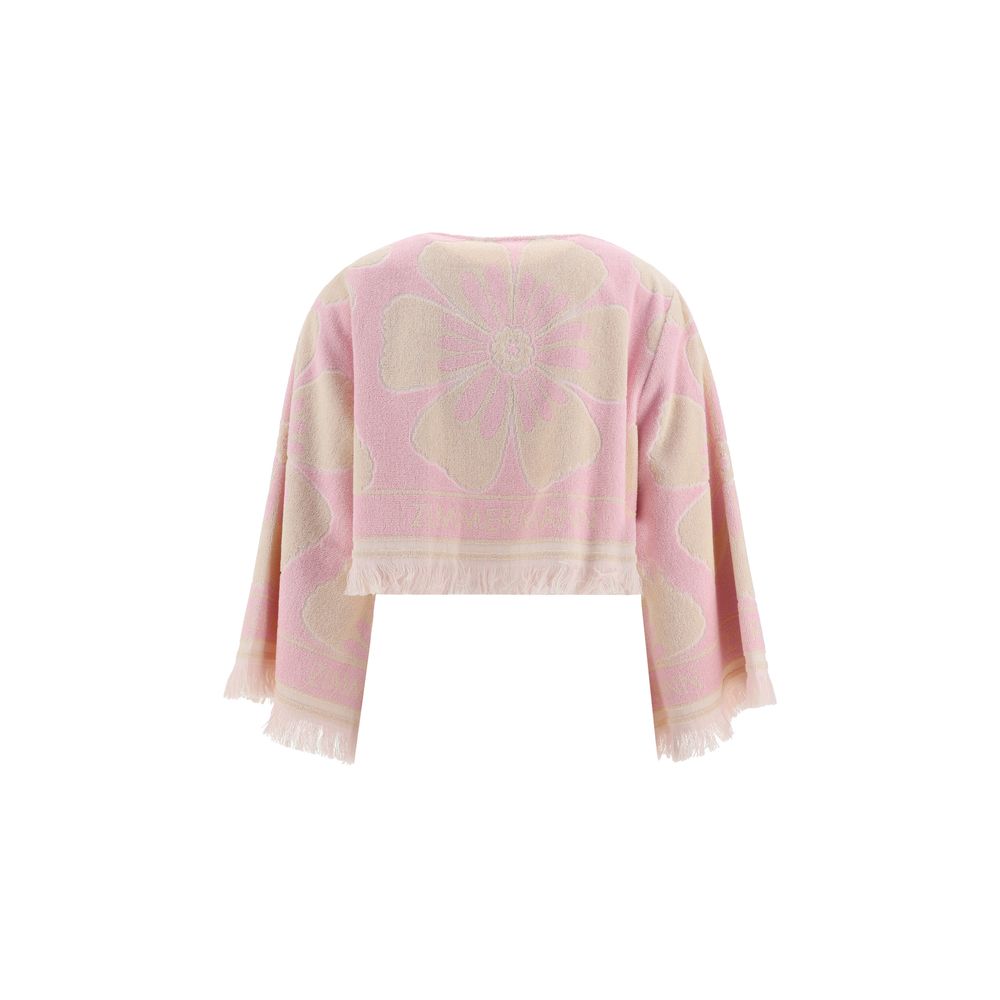 Cotton Top by Zimmermann, spongy effect design, long-sleeved cropped style, wide sleeves, floral print, regular fit.
