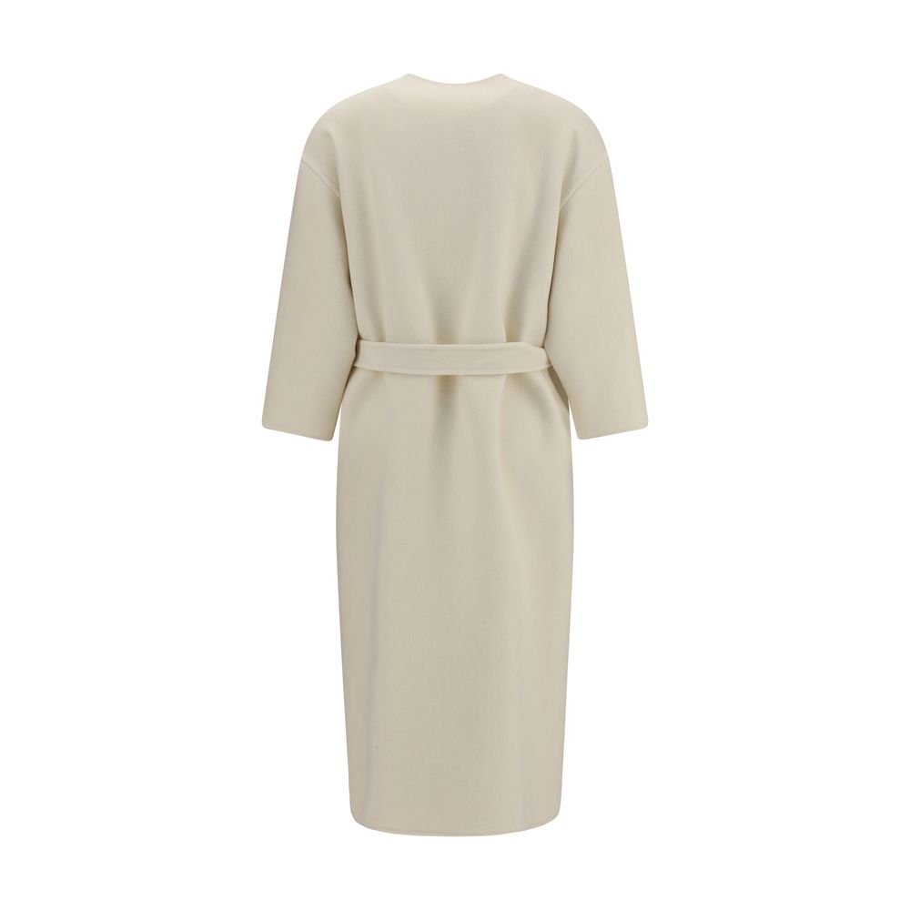 Long Coat by Aftercoat features a classic crew neck that lends an elegant, understated look. The front button closure adds a touch of sophistication, while the matching knotted sash at the waist allows you to customize the fit, creating a defined silhouette. The two side welt pockets add functionality without compromising the clean aesthetic of the design.