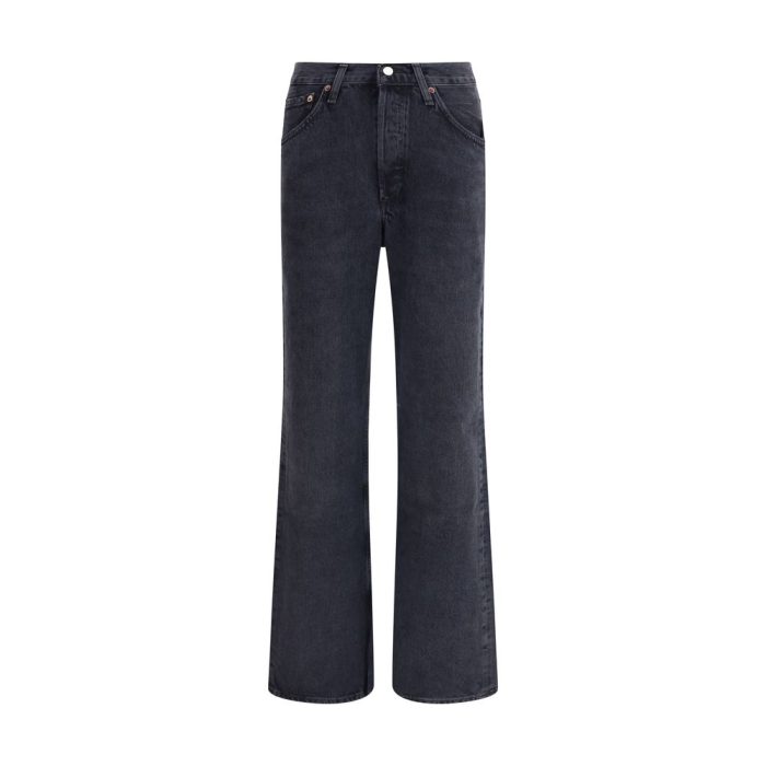 Agolde’s Kelly Jeans offer an essential and modern silhouette, ideal for a casual yet polished look. Made according to the classic five-pocket model, they feature a front button closure and belt loops along the waistband. The distinctive detail is precisely the waistband, shaped with a slight V-shape, which enhances the figure and adds a contemporary touch to the design. The straight leg cut makes them versatile and suitable for any occasion.