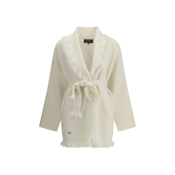 The Alanui Finest Cardigan is a wrap-around, refined piece made from a fine blend of cashmere and silk with Milano stitch work. Featuring the brand’s classic Icon fit, it is complemented by a coordinating belt and fringed edges for a distinctive handcrafted touch.