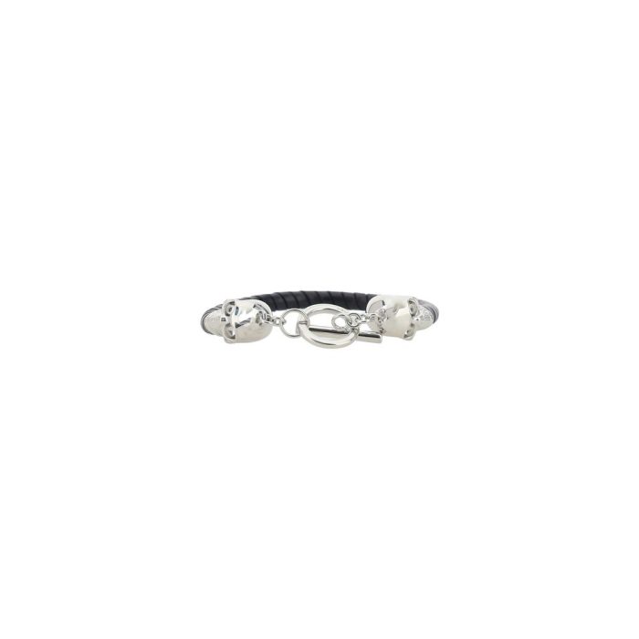 The Alexander McQueen Leather Bracelet features a refined woven design, complemented by a metal T-bar clasp embellished with the brand’s iconic Skull. A boldly styled accessory that combines craftsmanship and unmistakable character.