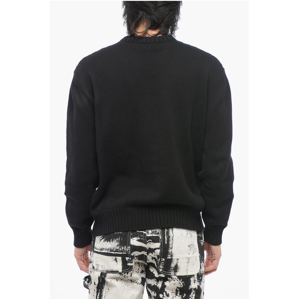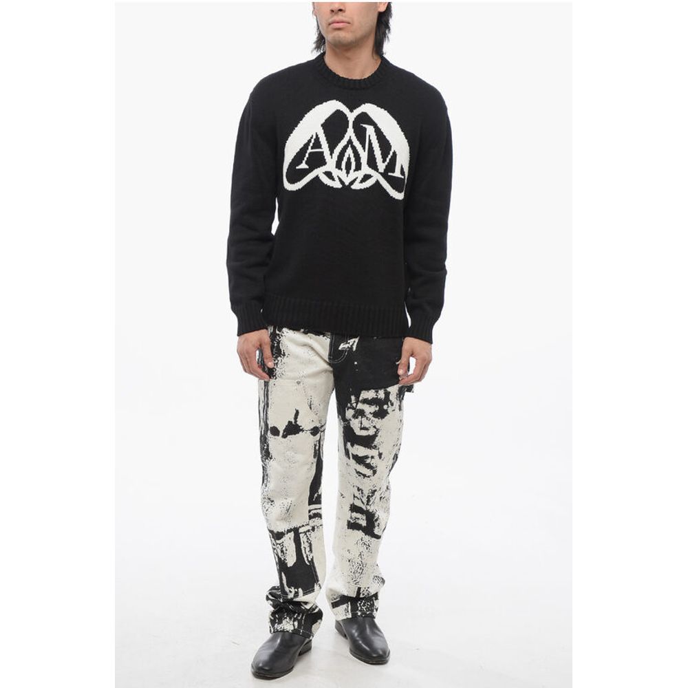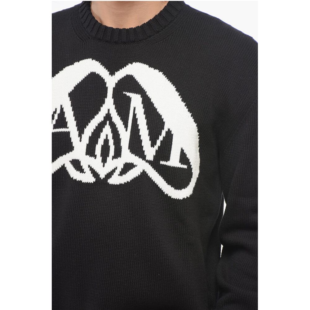 Alexander McQueen Crew Neck Cotton Pullover with Jacquard Logo