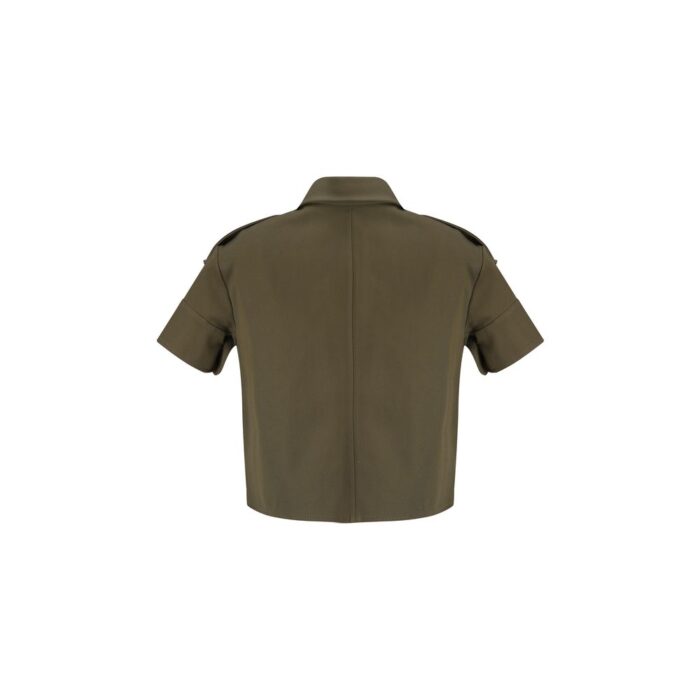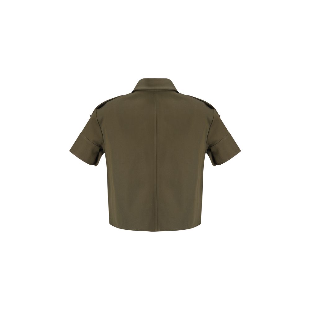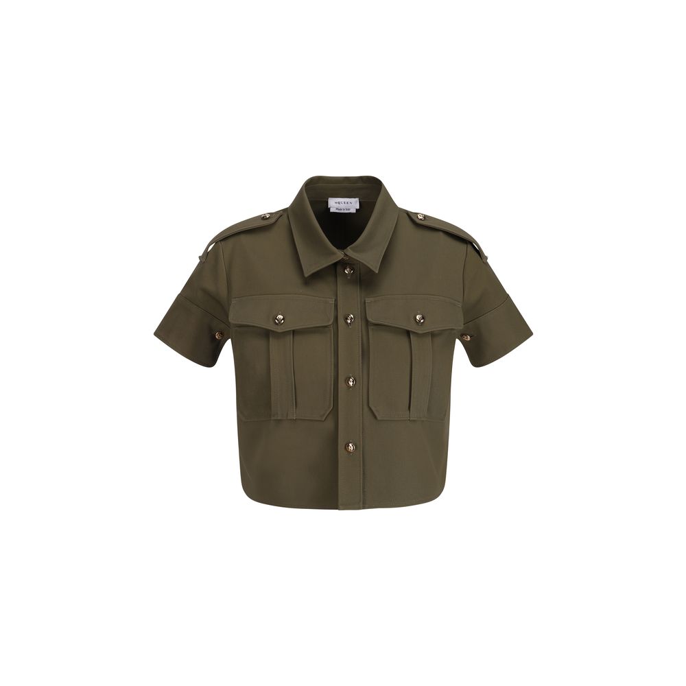 Cotton Shirt by Alexander Mcqueen, cropped pattern with short sleeves, classic collar, front button closure, two front patch pockets with button-fastening flap, monochrome pattern, fitted fit.