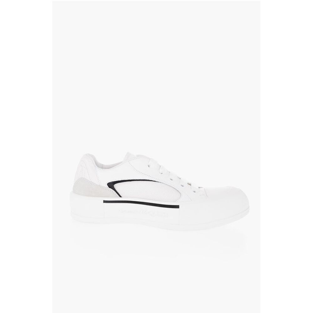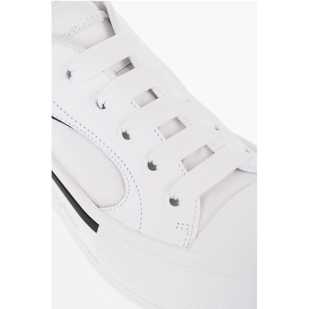 Alexander McQueen Solid Color Leather and Canvas Low-Top Sneakers