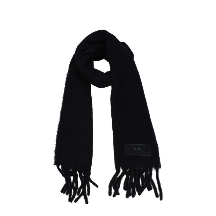The product with MPN USF417AA00034001 and code F79154 alpaca in black is a scarves designed by Ami. It has features like fringes, side logo.