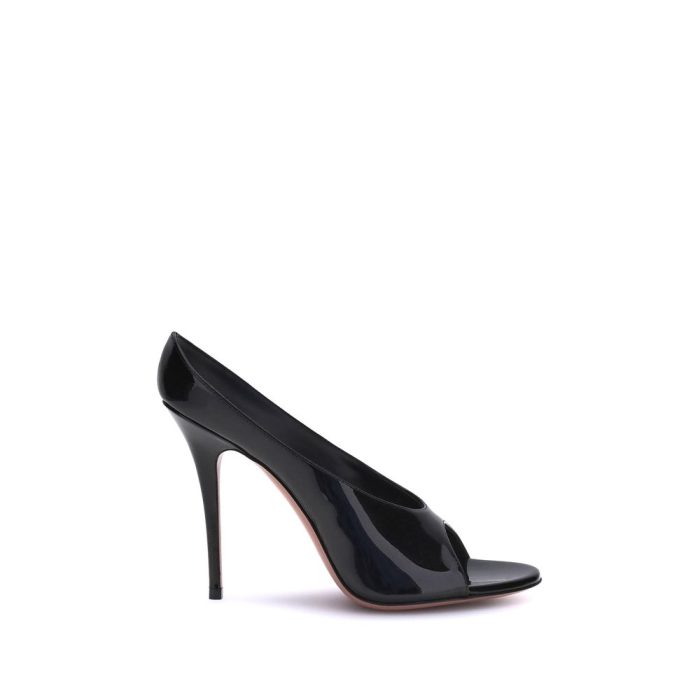Amina Muaddi’s leather Sandals are the epitome of seductive elegance and distinctive design. The open toe on the front lends a sensual and modern touch, while the slim stiletto heel slims the figure, ensuring a sophisticated gait. The logoed sole is a discreet yet unmistakable seal of the brand’s exclusivity. Crafted with a patent finish, these sandals are perfect for adding a touch of glamour and boldness to any evening or special occasion outfit.
