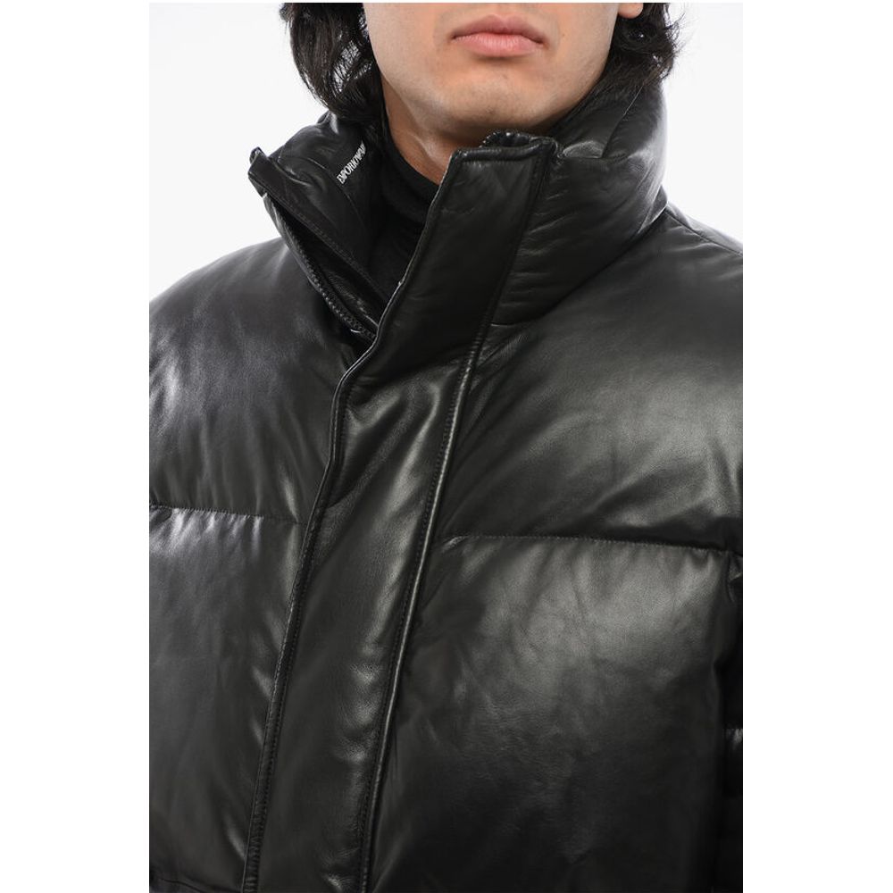 Armani EMPORIO Leather Down Jacket with Hidden Closure