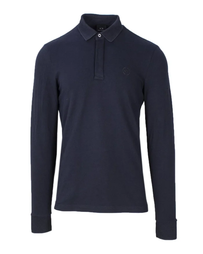 Timeless plain long sleeve polo shirt Brand: Armani Exchange Gender: Men Type: Polo Season: Fall/Winter Color: Blue Pattern: Plain Fastening: Buttons Sleeves: Long Collar: Polo Composition: 96% cotton 4% elastane 96% cotton 4% elastane Machine washable at 30 degrees Size on Tag: 2XL