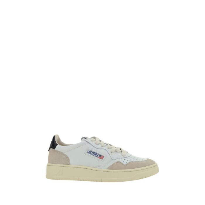 Calfskin Medialist Low Sneakers by Autry, round perforated toe, front closure with laces, leather tab with label stitched in tone, iconic brand monogram in contrast on the side panel, flat sole.