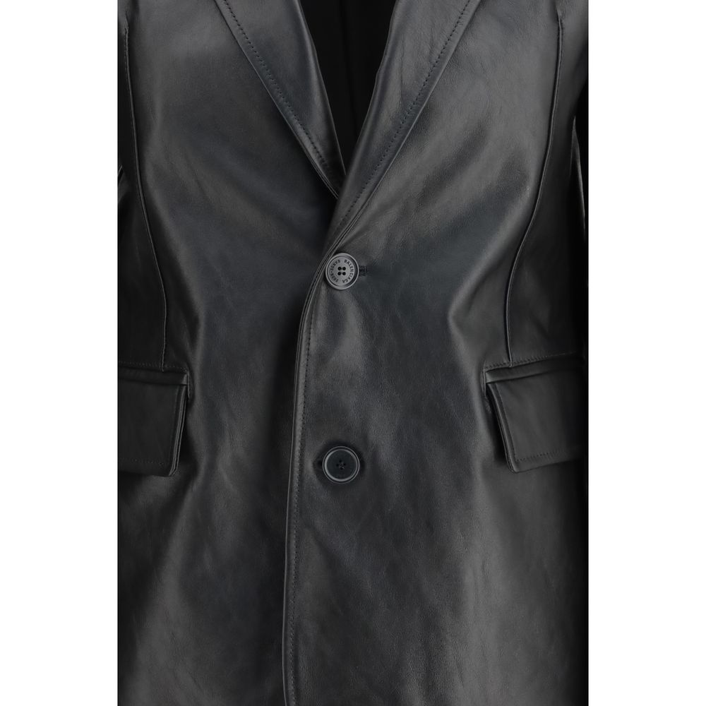 The standard Jacket by Balenciaga delivers a refined take on modern tailoring with a clean, contemporary aesthetic. Designed as a single-breasted style with button fastening, it is distinguished by classic leather lapels, adding a bold contrast and a signature edge. The streamlined construction is completed by two front pockets, balancing functionality with understated elegance. A statement piece that embodies Balenciaga’s modern tailoring attitude.