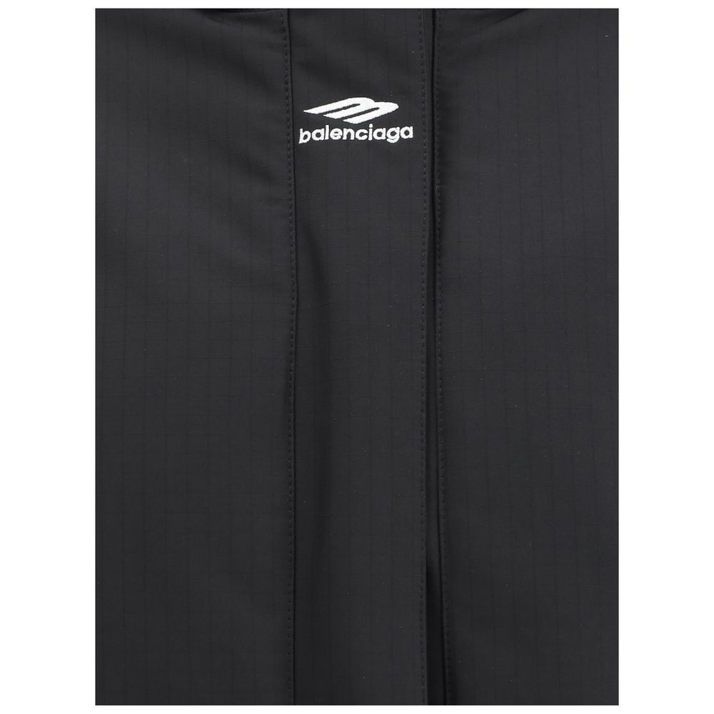 Down Jacket by Balenciaga, high collar with pocket for hood storage and fitted with zipper for closure, front closure with double-slider zipper and Velcro flap, two side welt pockets with zipper, adjustable Velcro cuffs, adjustable hem with inner drawstring, contrasting iconic brand monogram on left sleeve, all-over quilted design, monochrome pattern, regular fit.