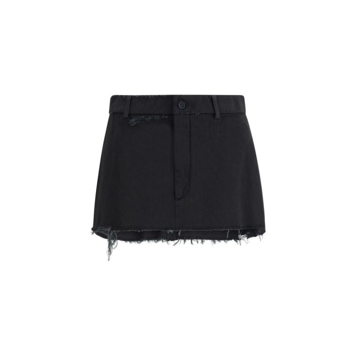 Balenciaga’s Fringed Miniskirt is a garment with a bold and modern character. Crafted with a zip-and-button front closure, it features belt loops at the waist and an asymmetrical frayed hem that lends movement and a gritty touch to the look. Ideal for adding an urban and contemporary accent to any outfit.