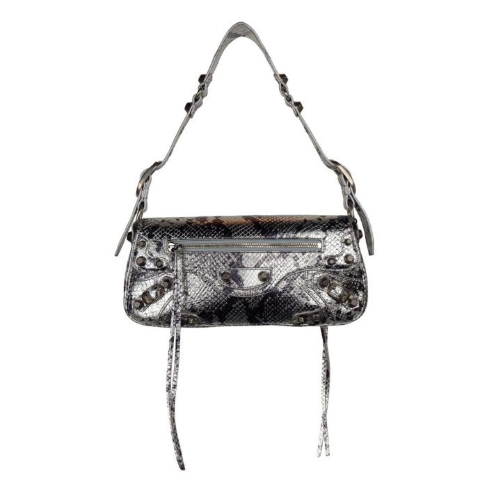 Balenciaga shoulder bag, silver snakeskin pattern, made in italy, button and zipper closure. Measurements: 31x15x8cm