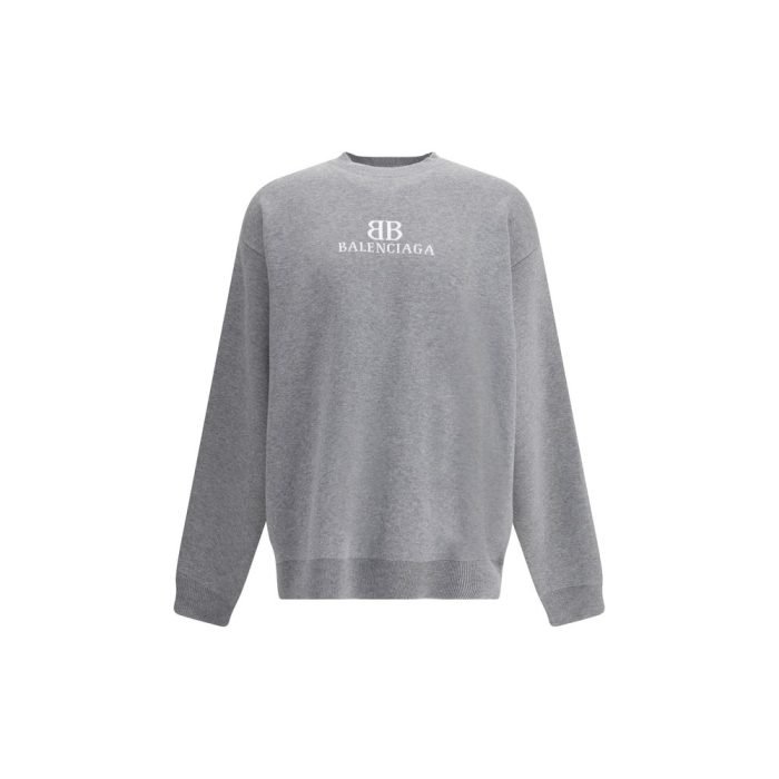 Cotton Sweater by Balenciaga features a ribbed crew neck that ensures comfort and style. The garment features the iconic contrasting monogram on the front, a distinctive element that enhances the design. Ribbed cuffs and hem complete the look, while the oversized fit gives a modern and relaxed allure, perfect for a contemporary and trendy outfit.