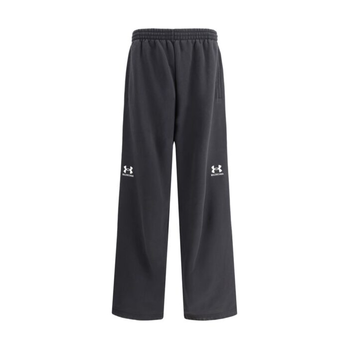 Cotton Sweatpants by Balenciaga, elasticized waistband, two side welt pockets, iconic brand monogram printed in contrast on front, monochrome pattern, regular fit.
