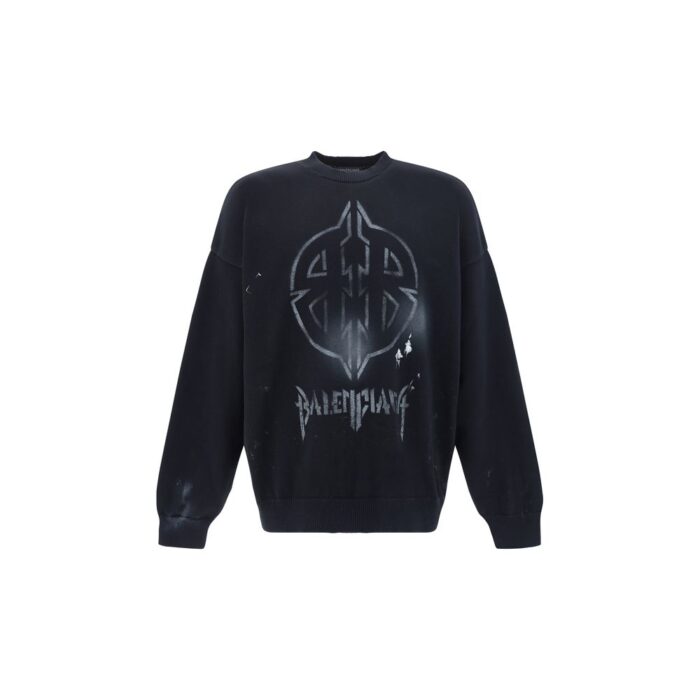 Cotton Sweatshirt by Balenciaga, ribbed crew neck, ribbed cuffs, ribbed hem, monochrome design, front printed maxi logo, regular fit.