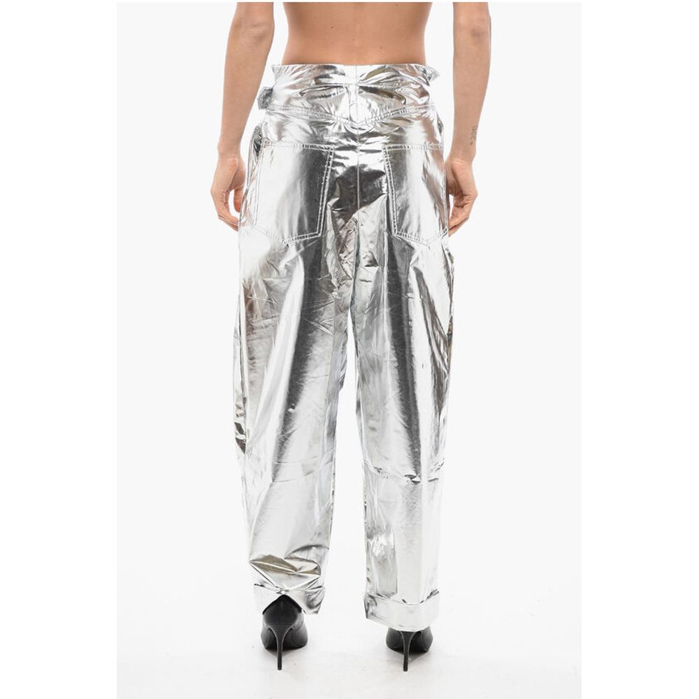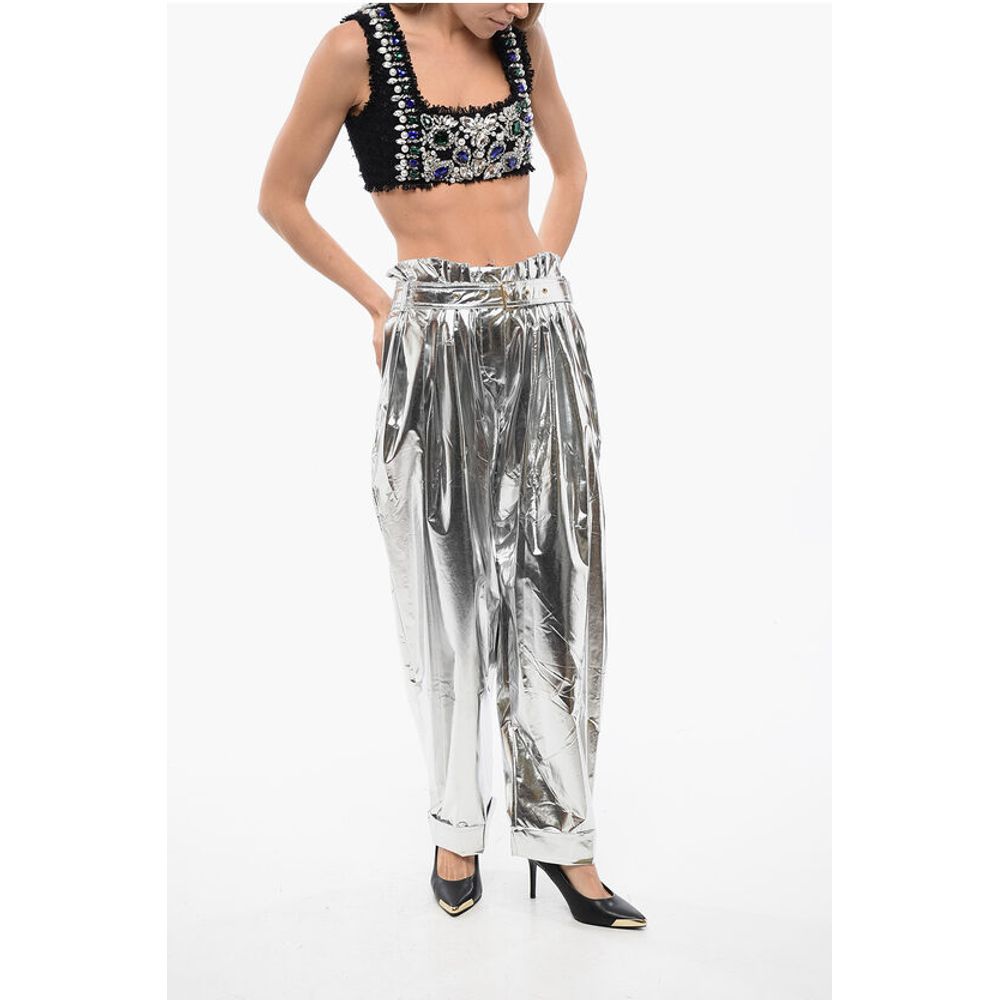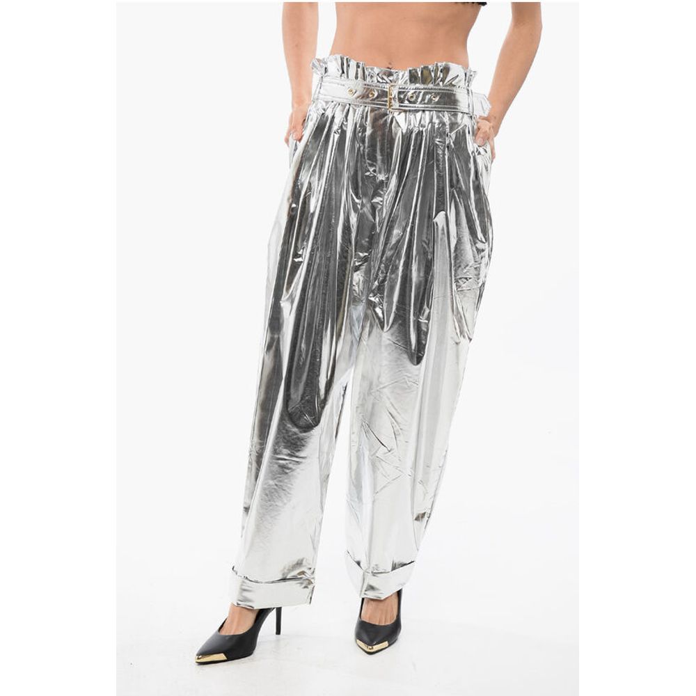 Balmain Pleated High-waisted Baggy-Fit Pants Metallic Effect