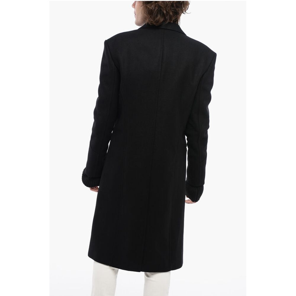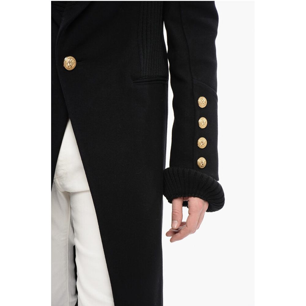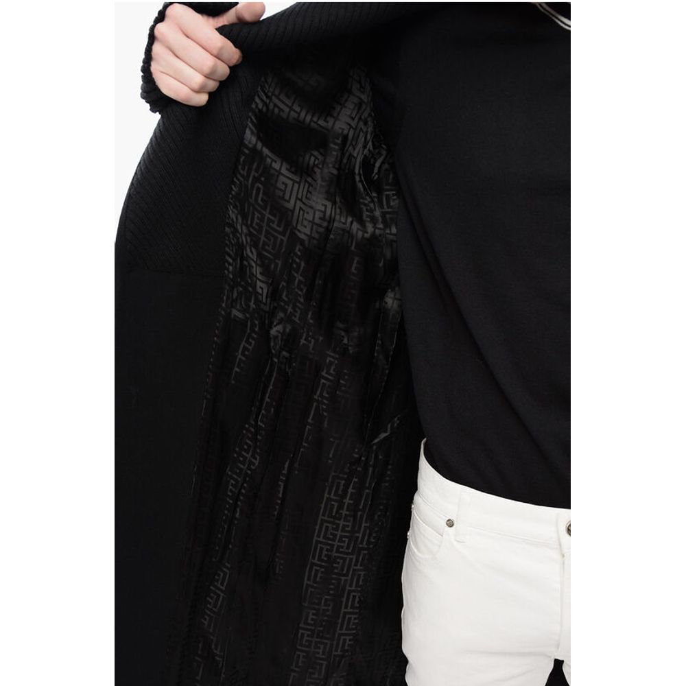 Balmain Virgin Wool Blend Coat with Ribbed Knitted Details