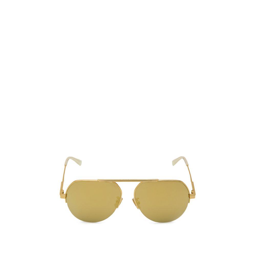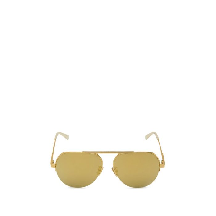 Bottega Veneta Gold Aviator Sunglasses with Mirrored Lenses. Gold metal frame, gold mirrored lenses.