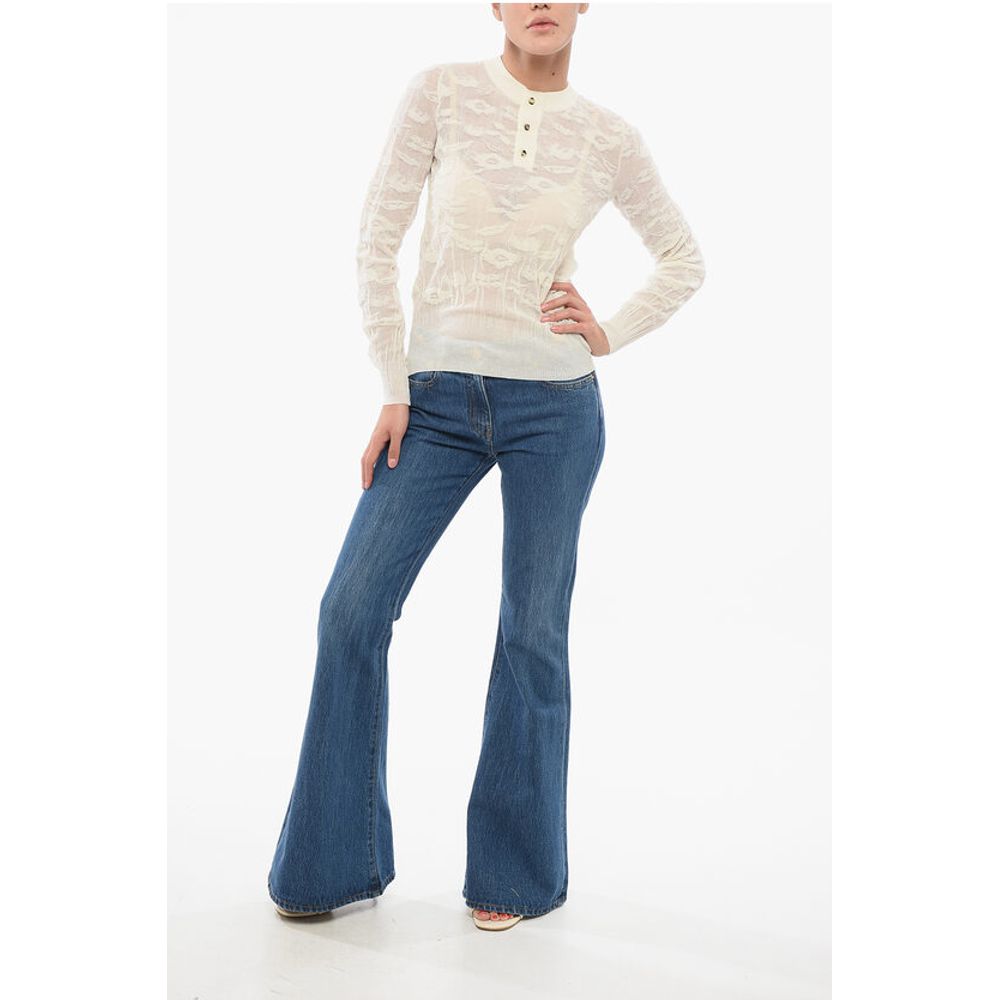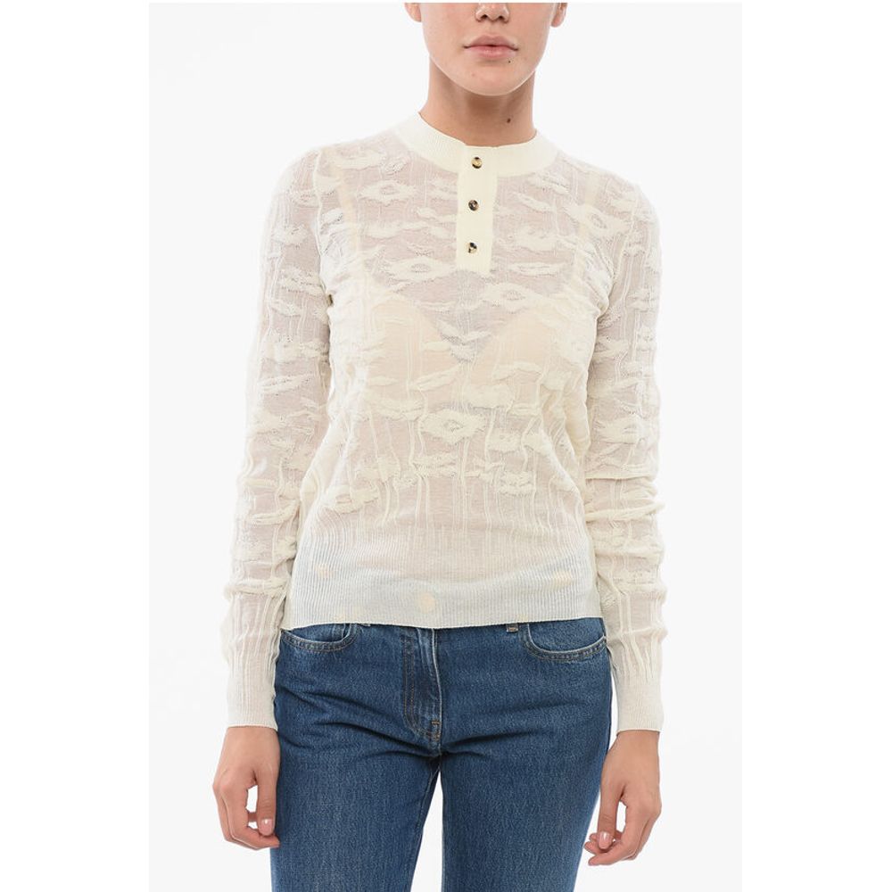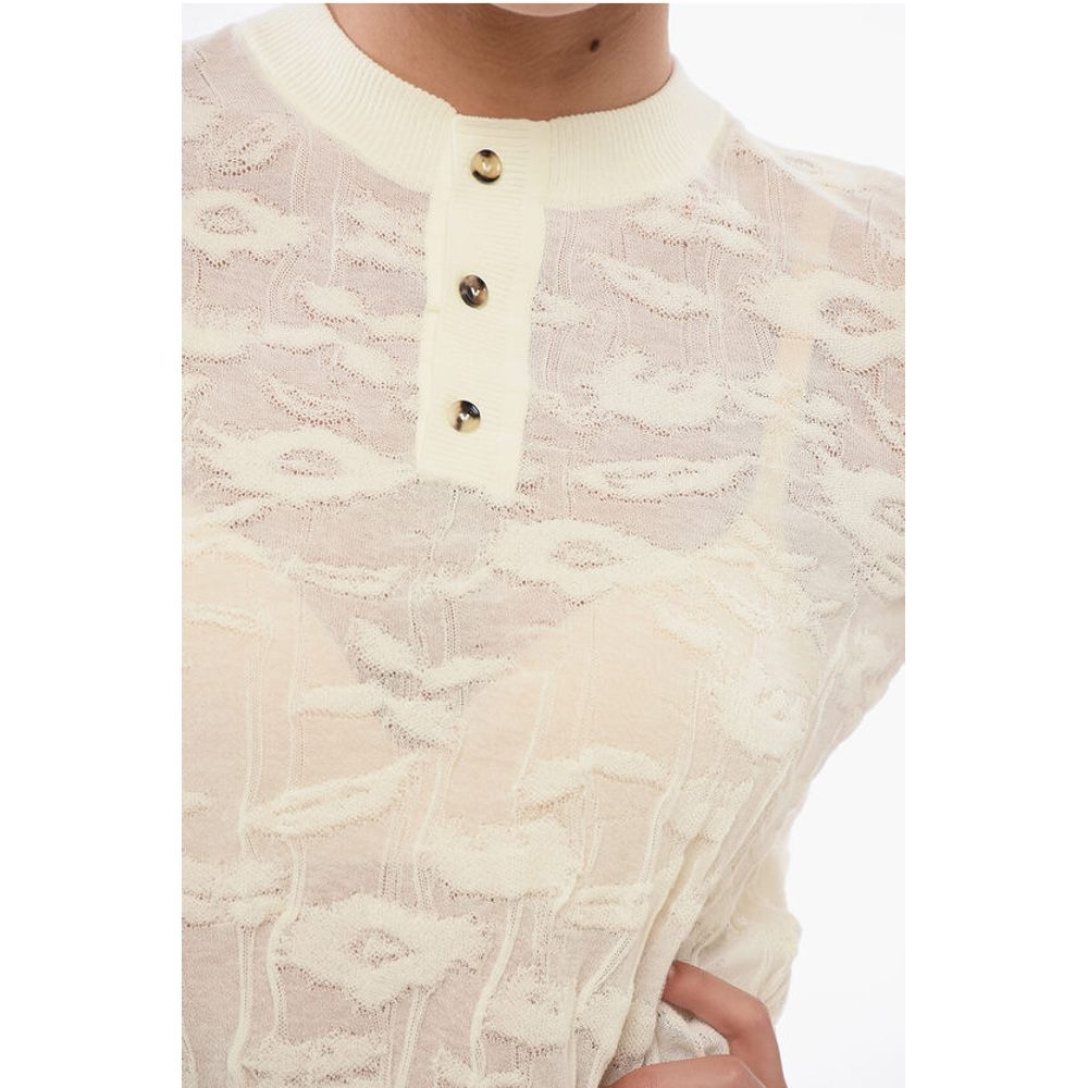 Bottega Veneta Jacquard Cotton Sweater with Buttoned Neck