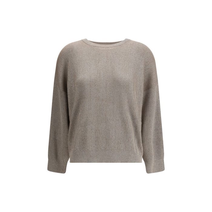 Brunello Cucinelli’s lurex Sweater is a bright and refined garment perfect for adding a touch of elegance to everyday wear. Made with an all-over ribbed design, it features a classic crew neck that enhances the model’s clean lines. The lurex yarn gives a delicate shine, an expression of the house’s understated and sophisticated style.