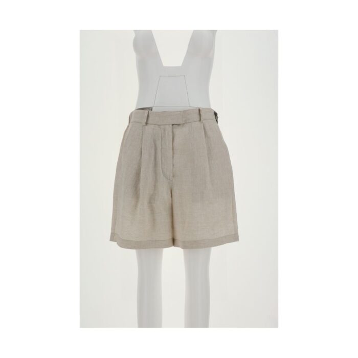 Linen Bermuda Shorts by Brunello Cucinelli, hook-and-zipper front closure, two side slash pockets, two welt pockets at back, waistband loops, monochrome pattern, regular fit.