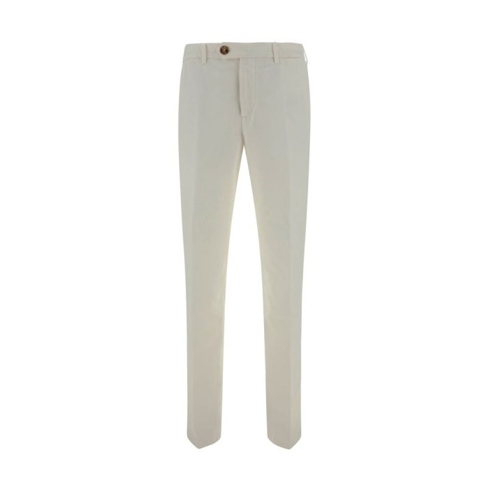Cotton Dyed Pantas by Brunello Cucinelli, featuring front button and zipper closure, two side slash pockets, two back welt pockets, waistband loops, monochrome pattern, regular fit.