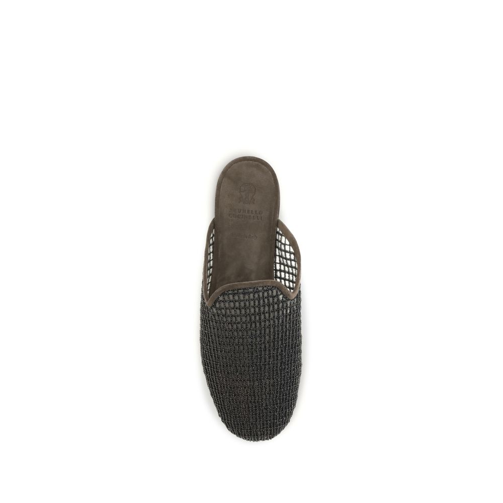 The suede Mules with Precious Net Embroidery by Brunello Cucinelli combine sophistication and comfort. Featuring a round toe and flat sole, they are embellished with the elegant Precious Net embroidery, which gives the model a distinctive and sophisticated detail.