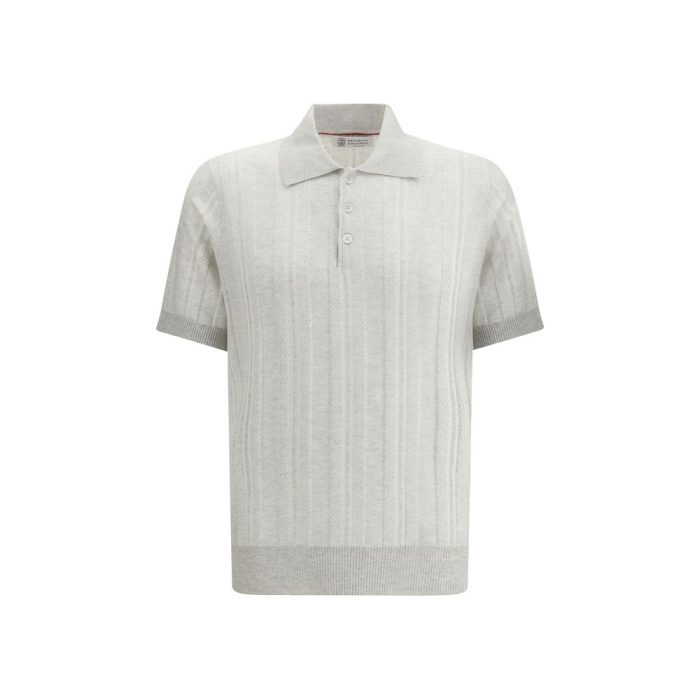 The Polo Shirt by Brunello Cucinelli with short sleeves conveys refined modernity through a shirt-style collar that adds balance and understated elegance. The half-button placket provides a measured classic touch, while the chevron knit pattern introduces a subtle, sophisticated texture. The ribbed hem and ribbed sleeve ends enhance structure and definition, complementing the natural softness of the cotton. The Polo Shirt reflects Brunello Cucinelli’s signature style with a clean and versatile silhouette, designed for everyday elegance with a refined and contemporary character.