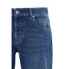 Cotton Jeans by Brunello Cucinelli featuring five-pocket straight fit, front button closure, front button closure, waist belt loops, iconic branded signature leather pressure-printed patch applied at back, turned-up hem.