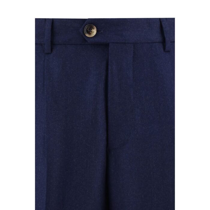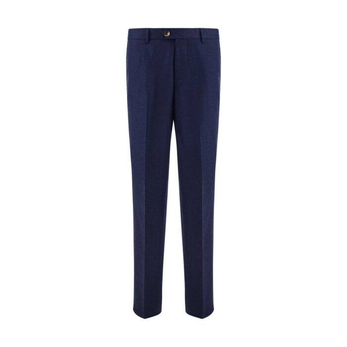 Virgin Wool Pants by Brunello Cucinelli featuring front button and zipper closure, two side slash pockets, two welt pockets at back, waistband loops, monochrome pattern, regualr fit.