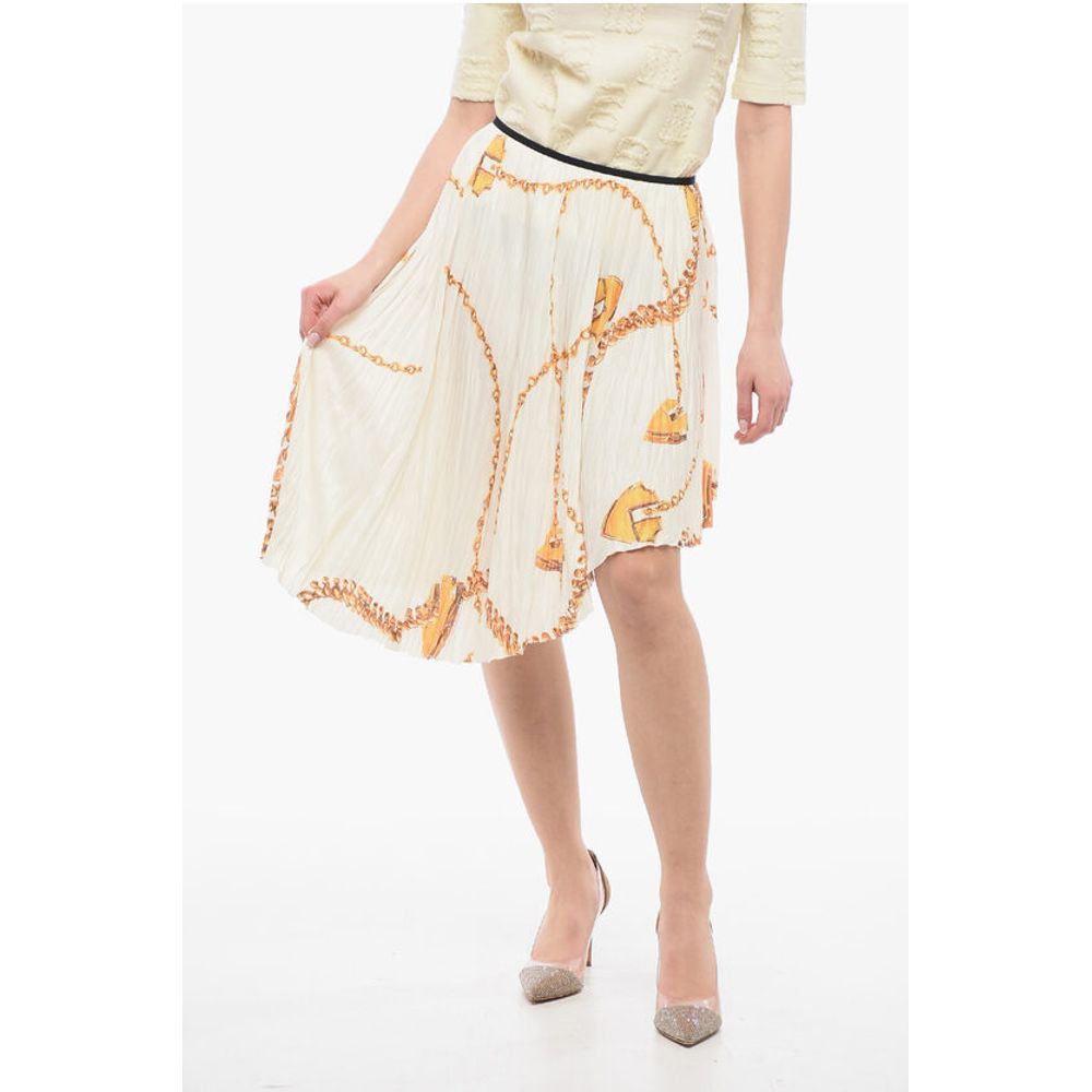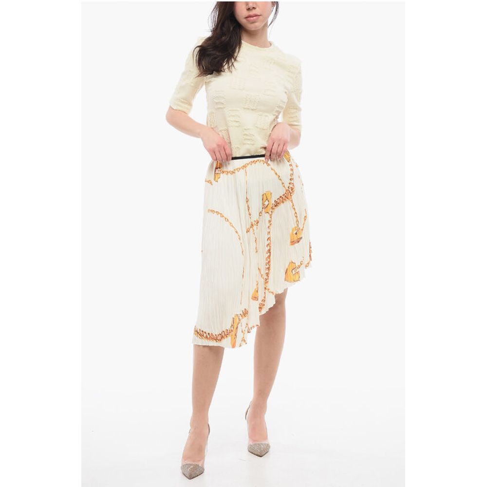 Burberry Asymmetric Pleated Skirt with Golden Motif
