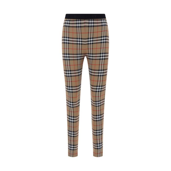 The Archive Check Leggings by Burberry are an elegant and trendy piece, characterized by a slim fit that enhances the figure. The contrasting elastic waistband adds a distinctive and comfortable touch, while the design is enriched with the iconic Archivio Check pattern of the brand, repeated uniformly across the entire surface. This tartan motif, a symbol of Burberry tradition, gives the leggings a sophisticated and contemporary look, perfect for those seeking an elegant but informal style.