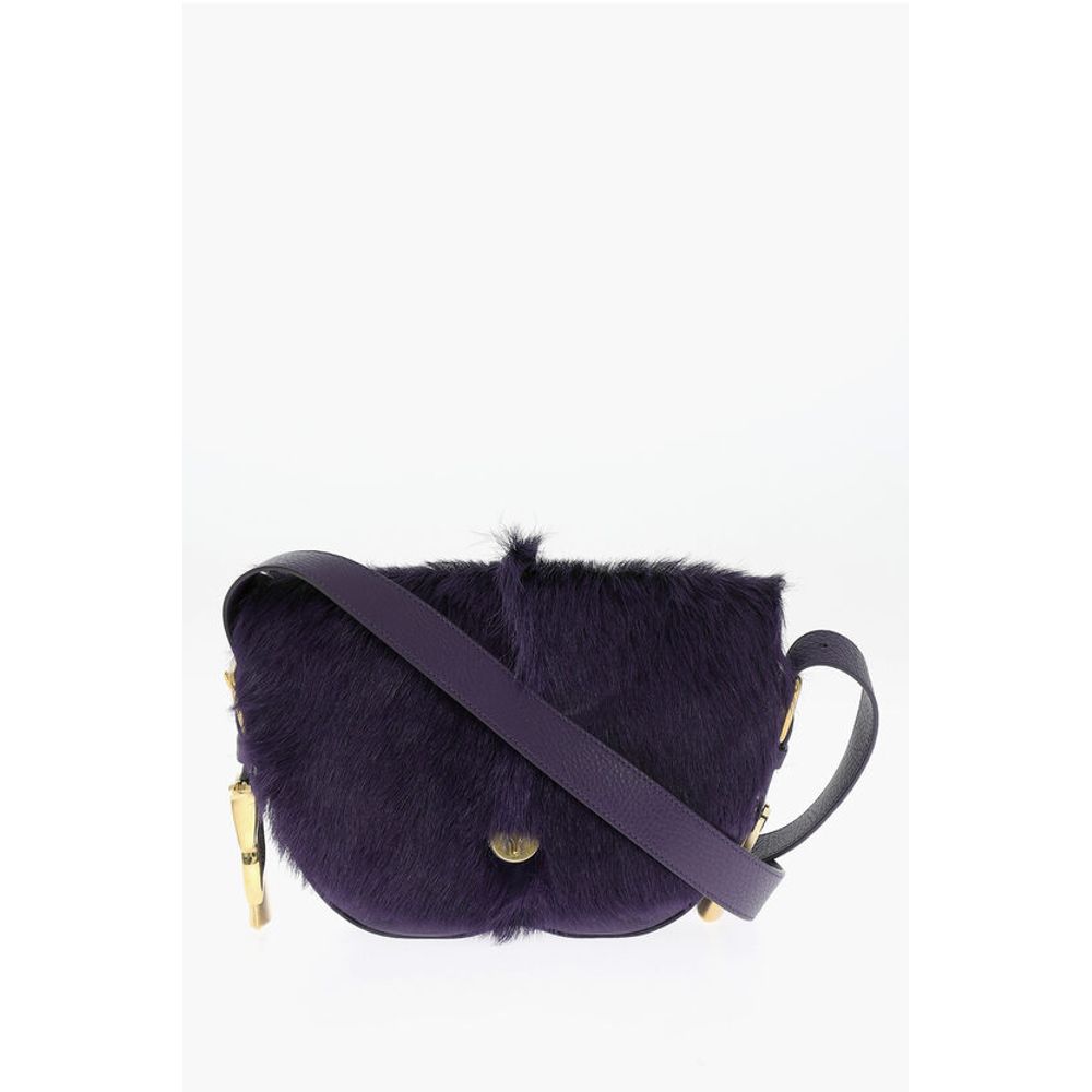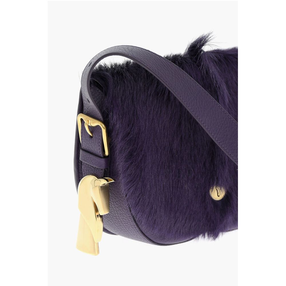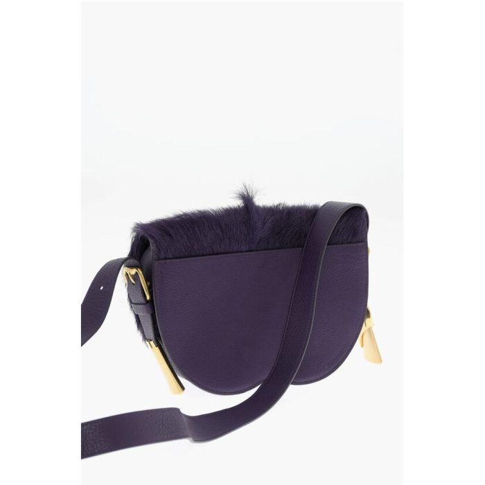 Burberry Leather CHESS Satchel Bag with Pony-Fur Detail