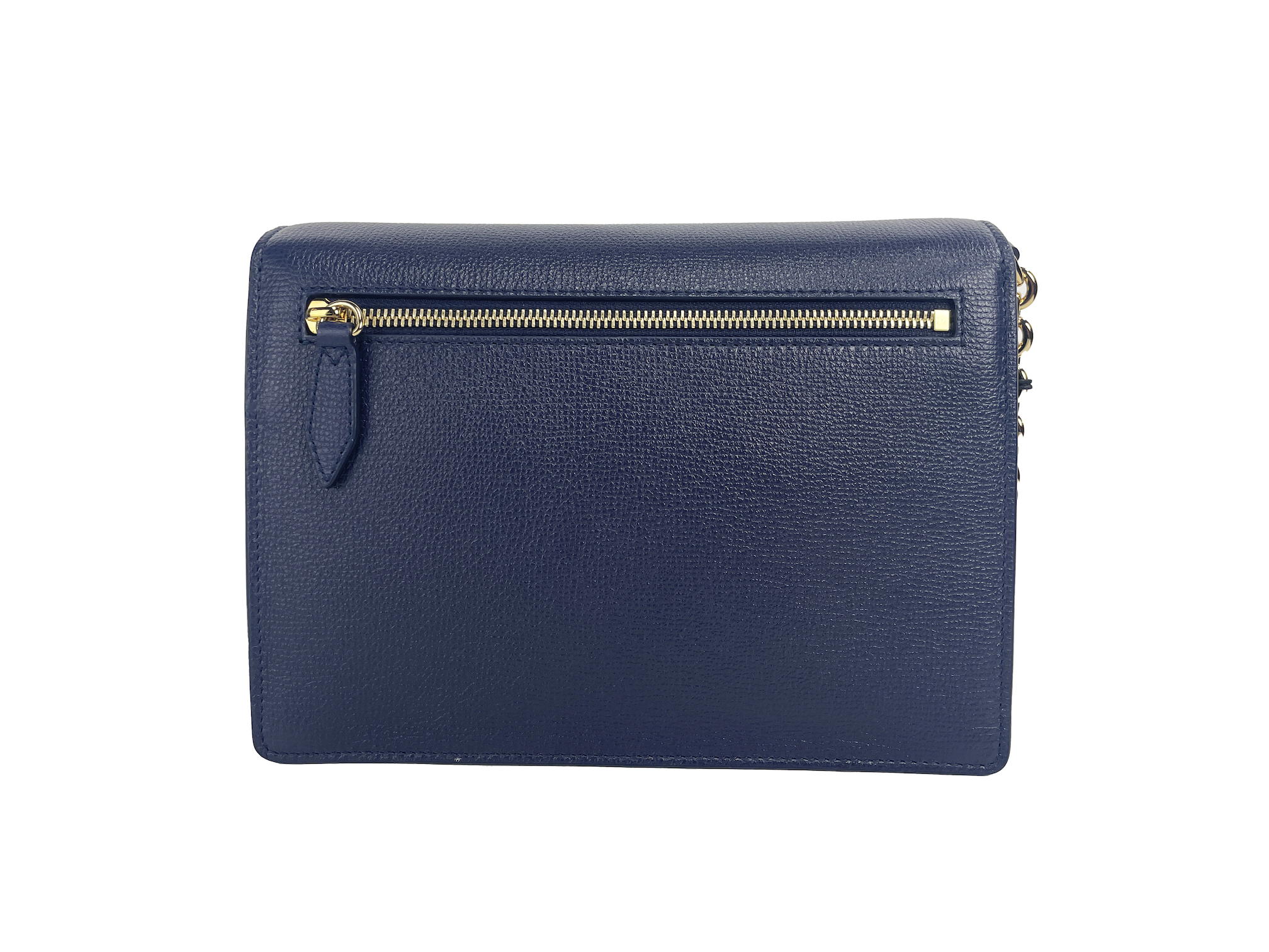 Features: Check Print, Gold hardware, Regency Blue, Interior Zip Pocket