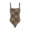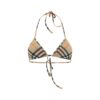 Swimsuit Top by Burberry, bikini model, design with iconic all-over Check Archivio pattern, sliding triangle top, drawstring closure at back of neck, adjustable matching bottom with side ties.