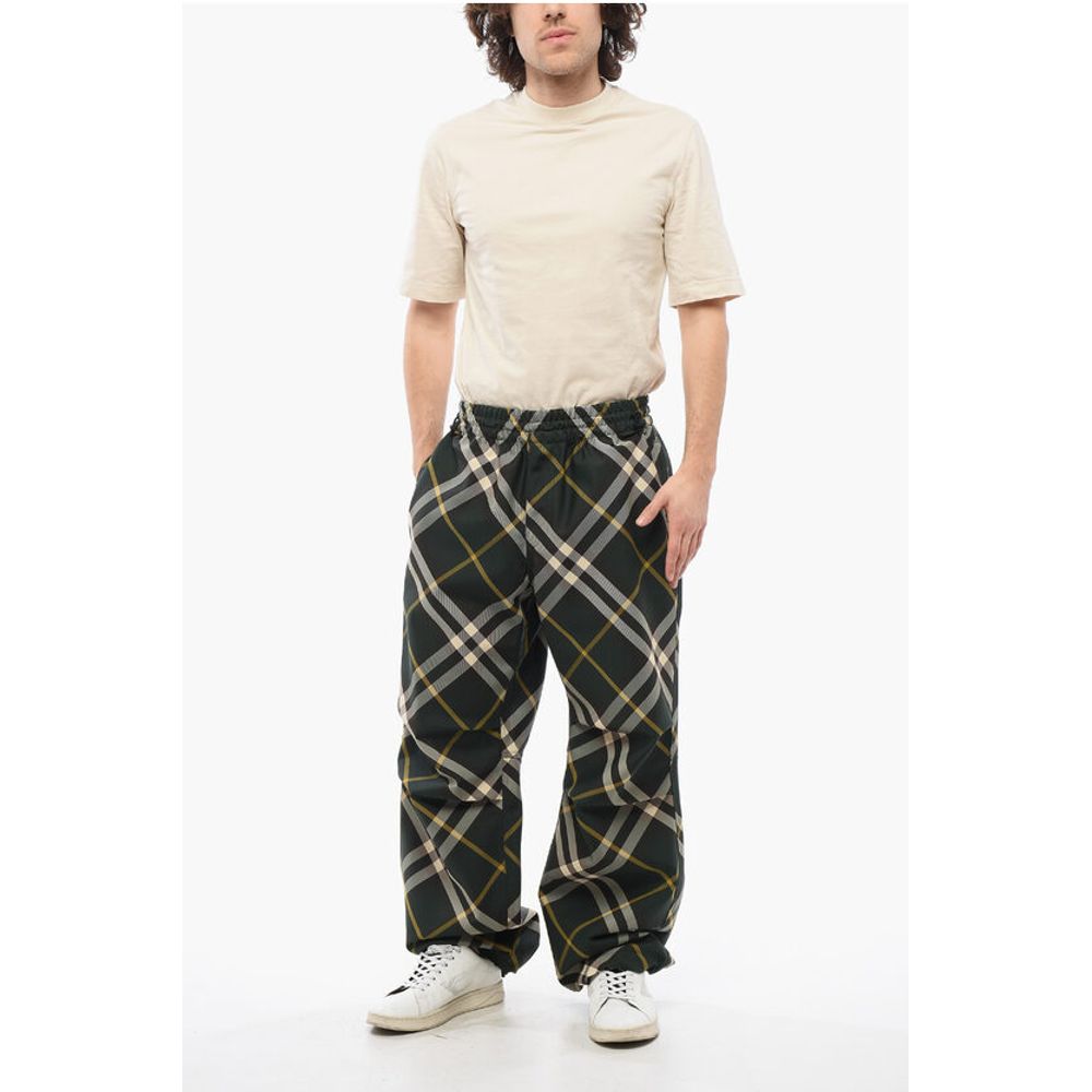 Burberry Tartan Patterned Nylon Sweatpants with Drawstringed Ankle