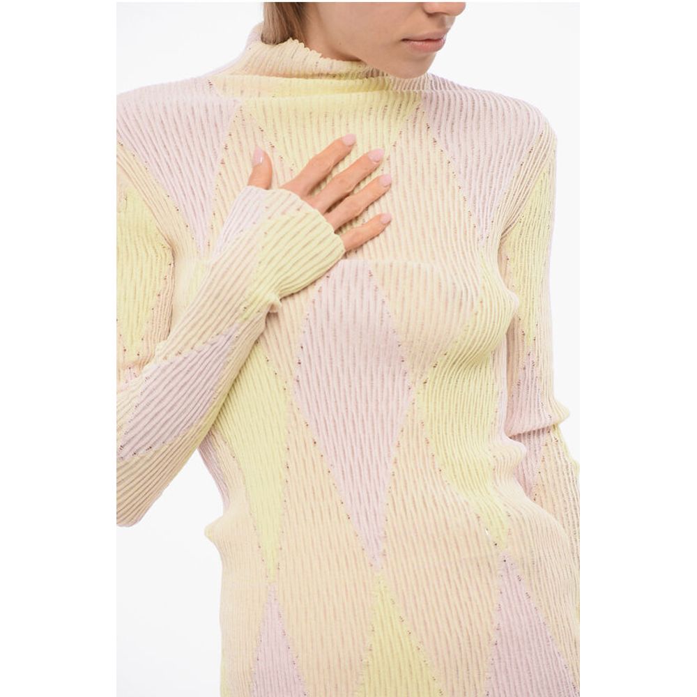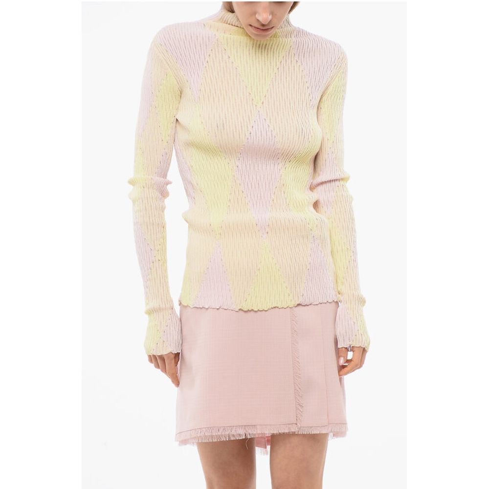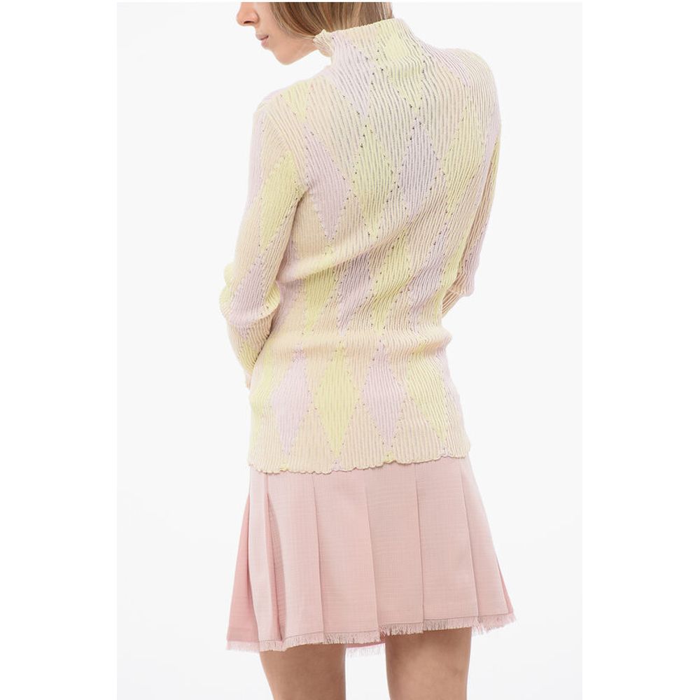 Burberry Turtleneck Silk Blend Sweater with Argyle Motif