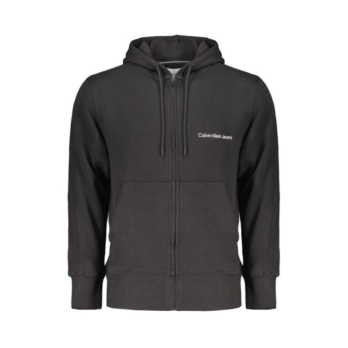 Calvin Klein Black Cotton Men Sweater with Hood and Central Pockets