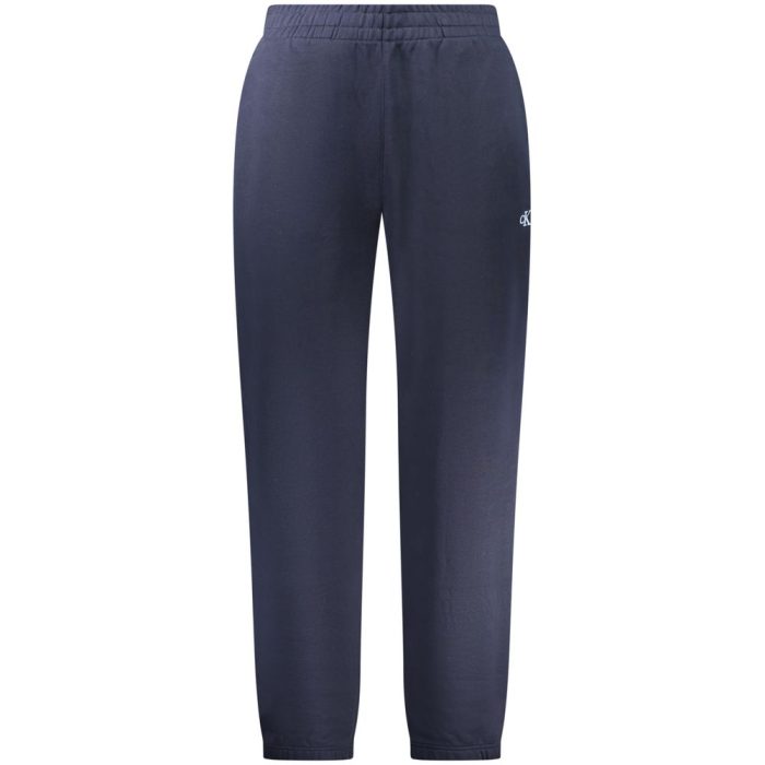 Elevate your casual wardrobe with the quintessential blend of comfort and style by Calvin Klein. These blue sports trousers offer a sleek silhouette with an elastic waist and adjustable laces for the perfect fit. Tailored from the softest cotton, they bring relaxed luxury to your everyday look. Finished with subtle embroidery and the iconic logo for that signature touch of exclusivity, these pants are a staple for any modern trendsetter.