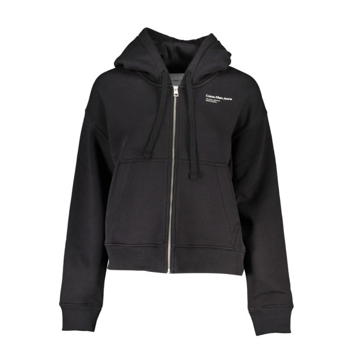 Embrace the perfect blend of comfort and style with this sleek hooded sweatshirt from Calvin Klein. Crafted from a soft mix of cotton and polyester, this garment features a cozy fleece lining, ideal for cooler days. Boasting two big central pockets for functionality and convenience, this sweatshirt comes with a smooth zip-up front for easy wear. The intricate embroidery and bold print add a touch of elegance, while the iconic logo ensures your look is effortlessly branded. With 20% recycled cotton, this piece is a nod towards more sustainable fashion choices.