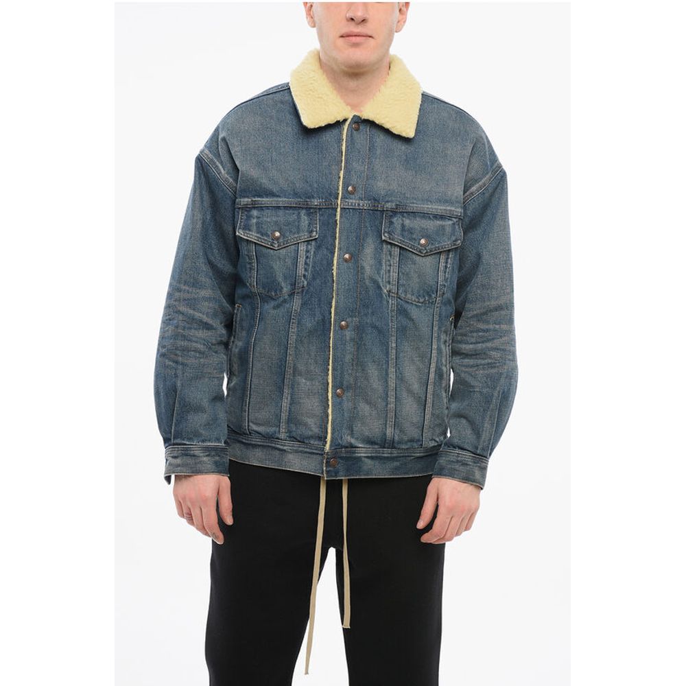 Celine Shearling Lined Denim Jacket with Rhinestoned Fringes