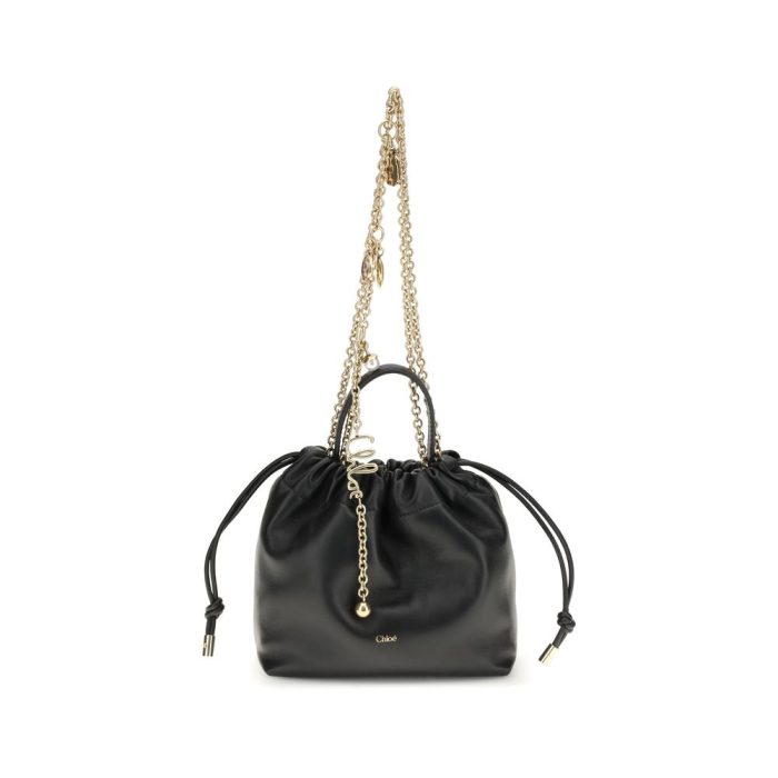 The Icons mini Shoulder Bag by Chloé is crafted from soft smooth lambskin nappa leather and features a refined drawstring closure. The precious Gold chain, embellished with Horse Medal detail, small charms and the Chloé signature, recalls the iconic aesthetic of the Maison. Thanks to the top handle and various chain loops and hooks, the model can be worn in multiple ways. Complemented by a main compartment, it is a compact and richly detailed bag with a distinctive appeal.