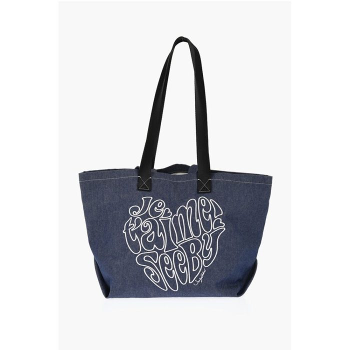 Chloé SEE BY Denim Tote Bag with Embossed Embroidery