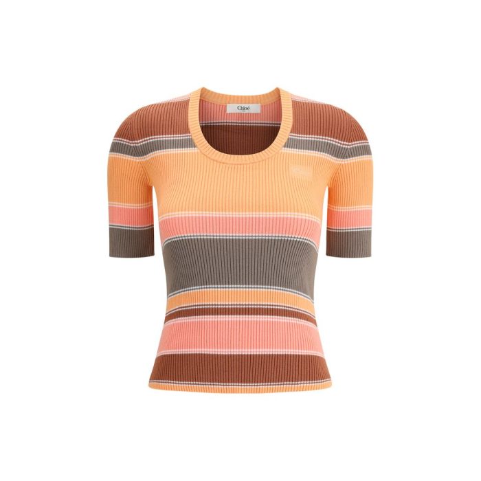 Chloé’s Striped Sweater is a vibrant and comfortable garment that combines a classic design with a playful twist. Crafted with a ribbed design, it offers soft texture and a snug fit. The round neckline lends a versatile profile, while the iconic signature stitched on the front attests to the brand’s authenticity and prestige. The multicolored striped pattern adds a burst of color and dynamism, making it a perfect garment to brighten any outfit with Chloé’s signature sophistication and cheerfulness.