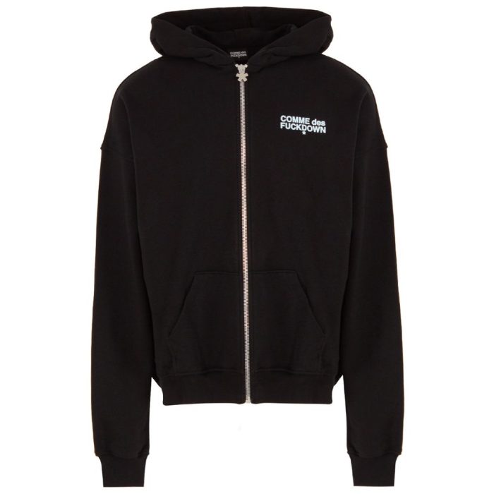 Comme des Fuckdown cotton sweatshirt with all-zip closure and hood, two front pockets and logo print on the chest