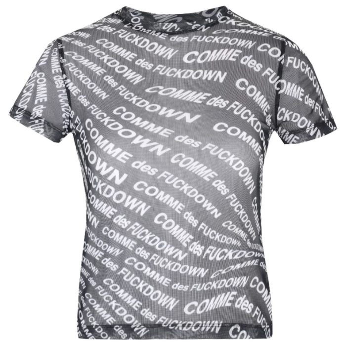 Comme des Fuckdown half-sleeve mesh t-shirt with all-over logo print